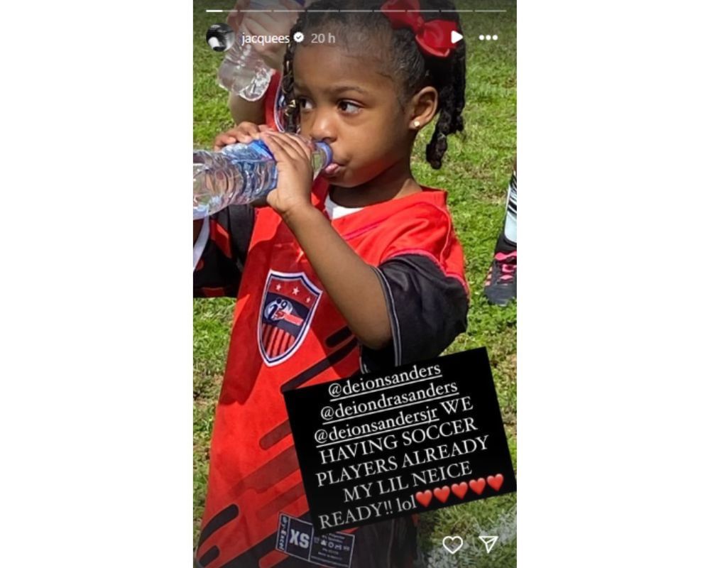 When $45 million-worth Deion Sanders (as per Celebrity Net Worth) tried taking a dig at Jacquees about soccer players, the rapper posted an image of her niece on social media with the caption,