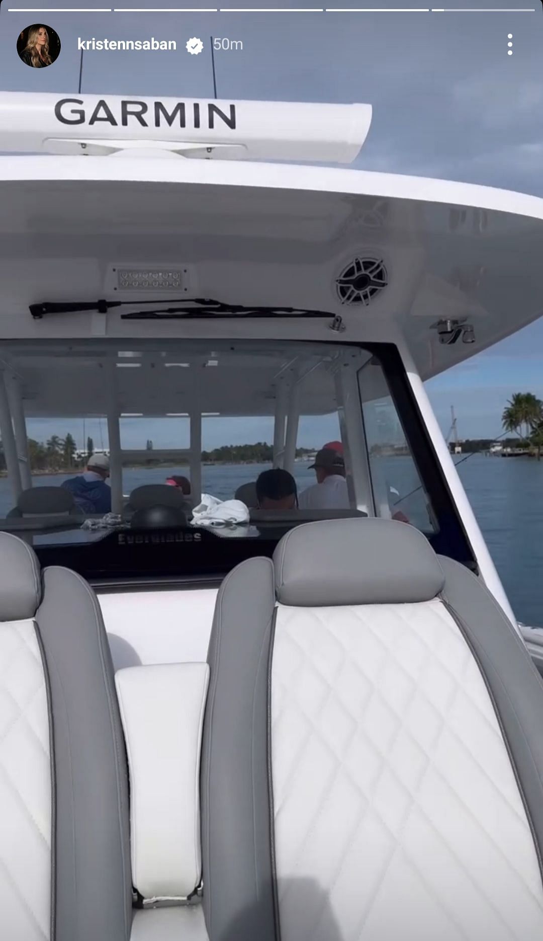 A few days after the game, Kristen who had promised to attend the Bama game, went on a family vacation in Florida. Her Instagram stories showed snippets of a sunset picture and a cruise in a luxury speedboat.