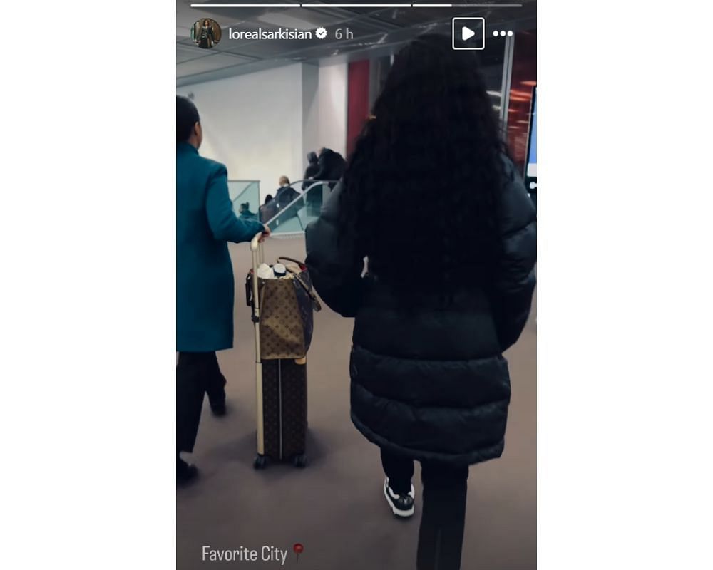 Sarkisian's wife posted a story on Instagram, wearing an all-black ensemble, styled with Louis Vuitton sneakers. In the story, she's walking out of the airport as another lady carries her luggage, including a Louis Vuitton bag worth over $3,700. Loreal captioned her story: