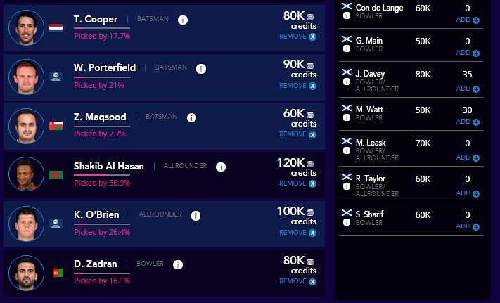 Ireland vs Oman: Captain – Kevin O Brien (William Porterfield is an equally good captaincy option in normal conditions, but since the scoring system here is skewed towards bowlers, O’Brien seems a wise move.)
