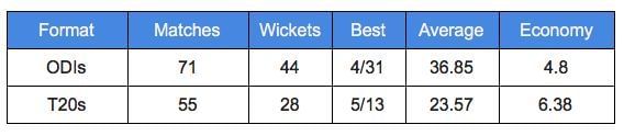 He is currently playing in the BPL for Comilla Victorians and has picked up 6 wickets in 4 matches so far.