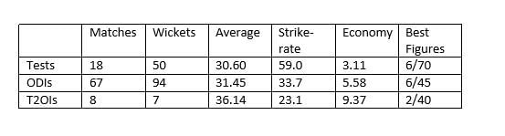 He was quite useful for the Kolkata Knight Riders in IPL 2017 with his deadly out-swingers.