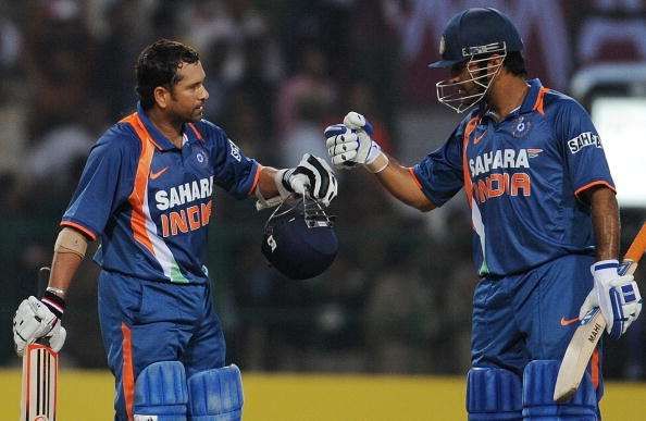 Dhoni walked in at No.5 and used the long handle to great effect, blasting a 35-ball 67 that took the score past 400. At one point, with Dhoni getting most of the strike, it felt as if Sachin would narrowly fall short of the double-ton. However, he eventually got there in the final over, steering a full ball to point to get to the milestone. Dhoni was, again, present at the other end to celebrate the moment with Sachin.