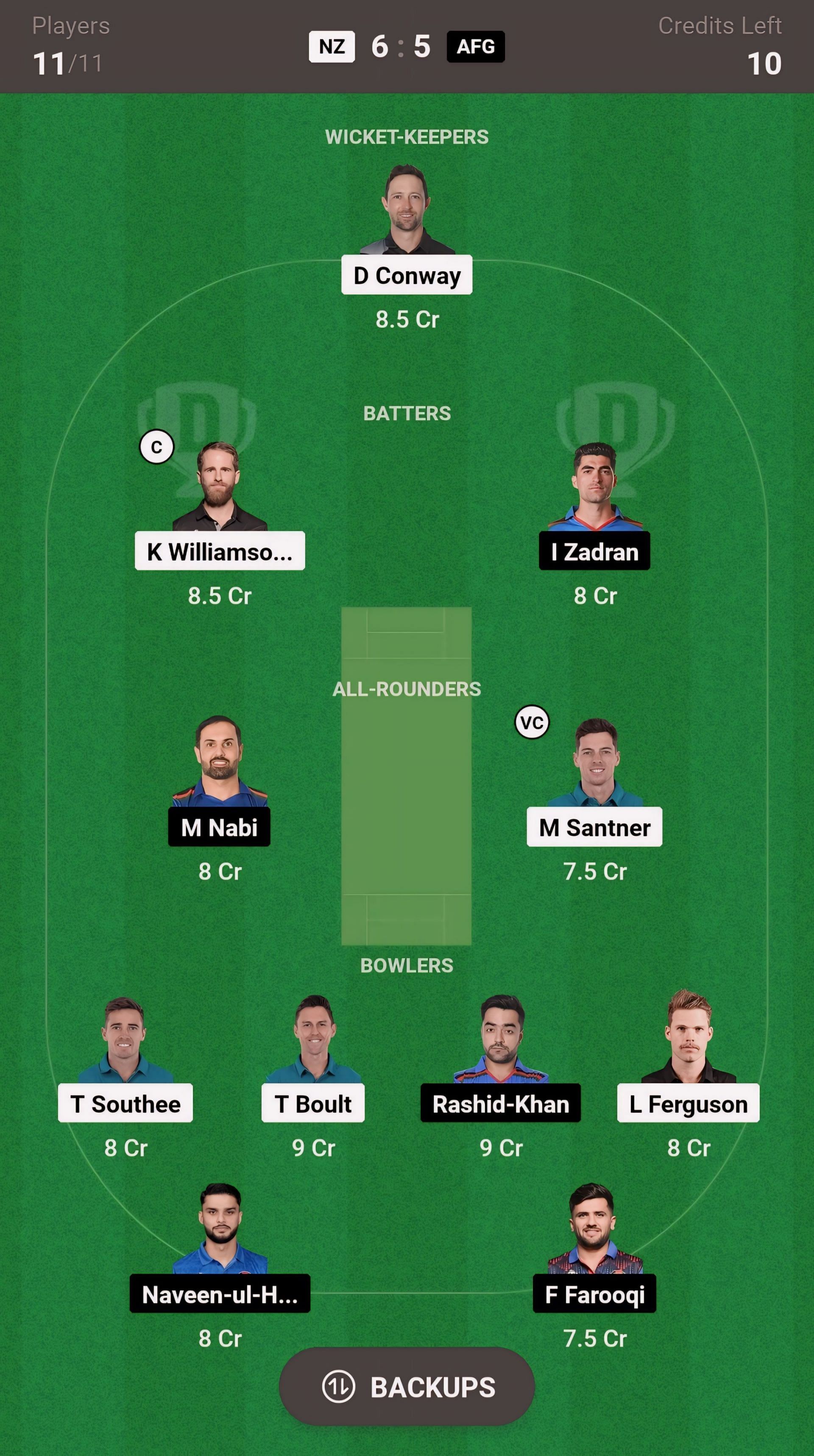 Afghanistan vs New Zealand Dream11 Prediction Today, Grand League