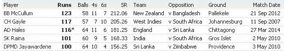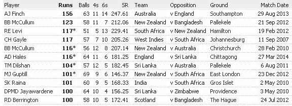 His score of 116 not out is the third highest individual score in World Twenty20 and also the joint sixth highest individual score in T20Is along with Brendon McCullum of New Zealand.