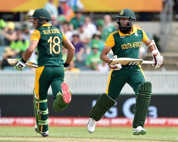 After skipper AB de Villiers elected to bat, South Africa lost left-handed opener Quinton de Kock (1) early with the scoreboard reading 12/1 in 2.3 overs. However, du Plessis joined in-form and right-handed opener Amla in the middle and the duo put up a 247-run partnership, their highest in World Cups for the second wicket.