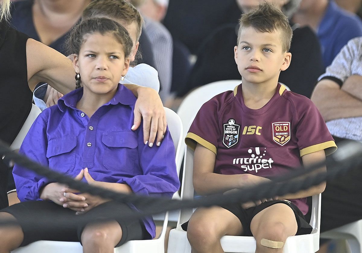 Andrew Symonds’ children, Chloe and Billy, along with their mother (Laura Symonds) and grandmother (Barbara Symonds) paid tribute to the late Aussie during Australia’s first ODI match against Zimbabwe at the Riverway Stadium in Townsville, Queensland, on August 28, 2022. They were accompanied by their dogs Buzz & Woody.