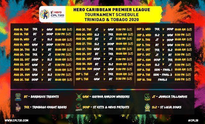 CPL 2020 Fixtures (All times in IST)