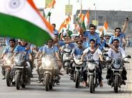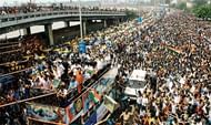 Fans surround the Team India bus during their victory parade after having won the ICC World T20 in 2007
