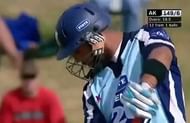 With the match already virtually in the bag, the unfortunate bowler Graeme Aldridge managed to bowl a waist-high full toss, which took Adams’ bat’s edge and sped to the fence. To Eldridge’s horror, the ball had also been signalled as a no ball, awarding two runs to the opposing team according to the rules of the tournament.