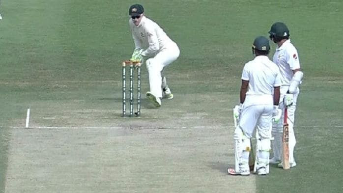 While facing Peter Siddle, Ali edged the ball past gully on the drive and it ran to the rope and the two batsmen thought it had gone for four. However, it stopped just short of the rope. Mitchell Starc chased it down and threw it back and Azhar and Asad were mid-pitch just having a conversation while Tim Paine whipped the bails off.