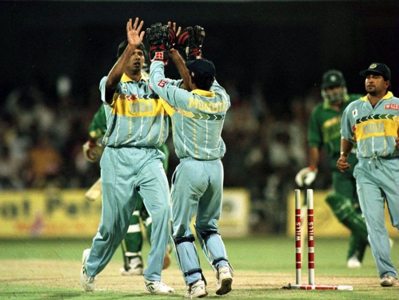 Pakistan wasn't going to give up without a fight and were coasting along comfortably before a moment of madness perhaps cost them the match. Aamir Sohail showed his bat to Venkatesh Prasad pointing at the cover region, the place where he had hit him for a couple of boundaries. Prasad gave a perfect reply by cleaning up Sohail in the very next ball. Pakistan failed to recover from the setback and lost the match by 39 runs.