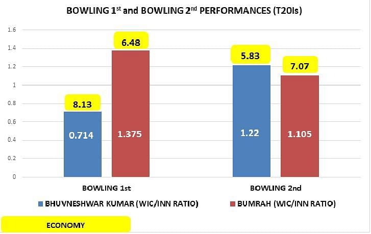 Toss has a huge effect, particularly in T20Is. Despite that fact, this duo have continued to put up stellar performances in T20Is. Comparatively, Bhuvneshwar Kumar seemed to have bowled economical spells especially while defending runs on the board, and on the contrary, Bumrah seemed to have curbed the run-flow while setting the score.