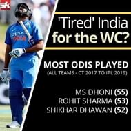 From the Champions Trophy 2017 till the start of the IPL in 2019, seven out of ten players who have played the most ODIs are Indians. Three of them, Rohit Sharma, Shikhar Dhawan and MS Dhoni, have played over 50 ODIs in this period. Rohit and Dhawan lead the T20I tally as well.