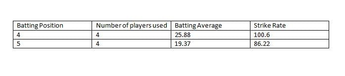 India used as many as 4 players for both number 4 and 5 spots. Though one or two changes were required due to injury, others were due to lack of clarity in the team's mind.