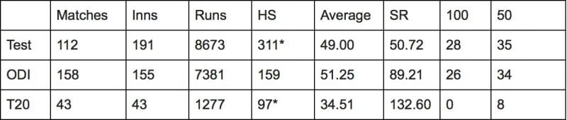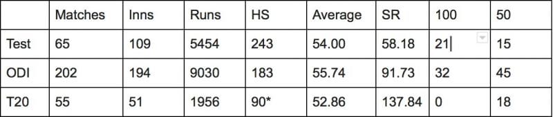 It is difficult to say which is his best format, such his incredible ability to transfer his skills from the red ball to the white ball game.