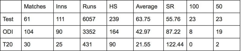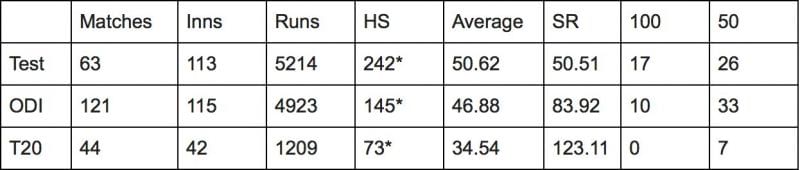 Kohli is undoubtedly one of the greatest ever white-ball cricketers. He averages over fifty in all formats, an incredible feat, especially in Twenty20 cricket. Questions can still be asked of his ability in English conditions against the swinging ball, but that fails to detract from his overall ability.