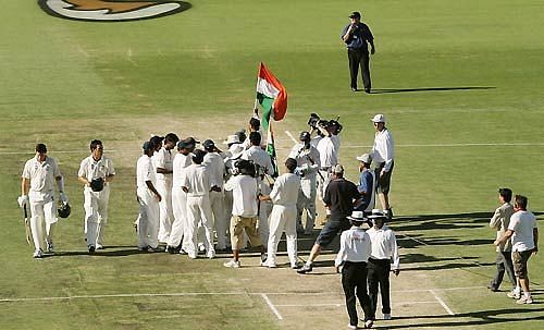 India 330 (Rahul Dravid 93, Mitchell Johnson 4/86) & 294 (VVS Laxman 79, Stuart Clarke 4/61) beat Australia 212 (Andrew Symonds 66, RP Singh 4/68) & 340 (Michael Clarke 81, Irfan Pathan 3/54) by 72 runs.