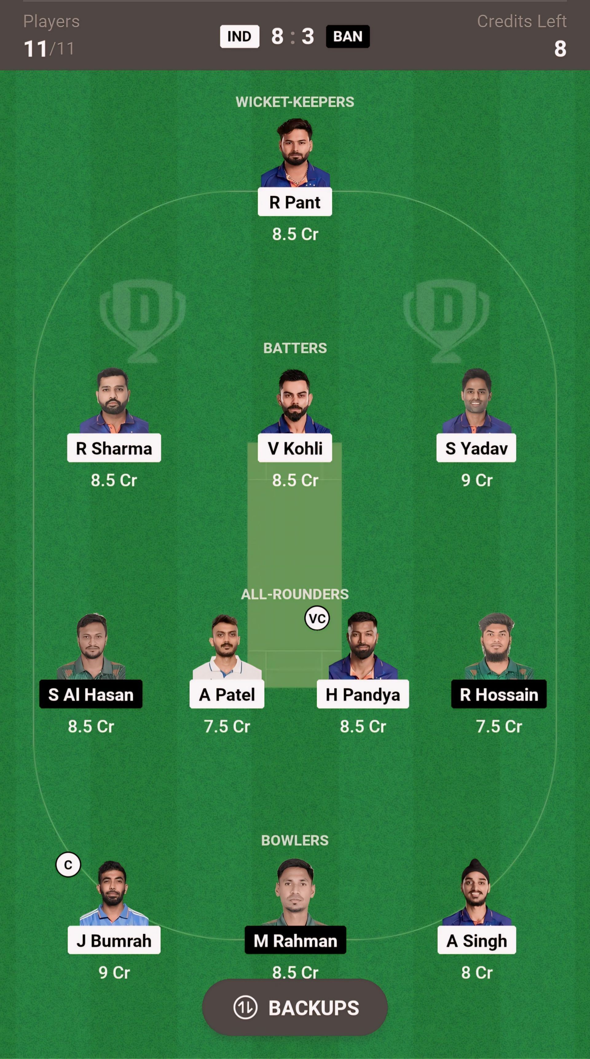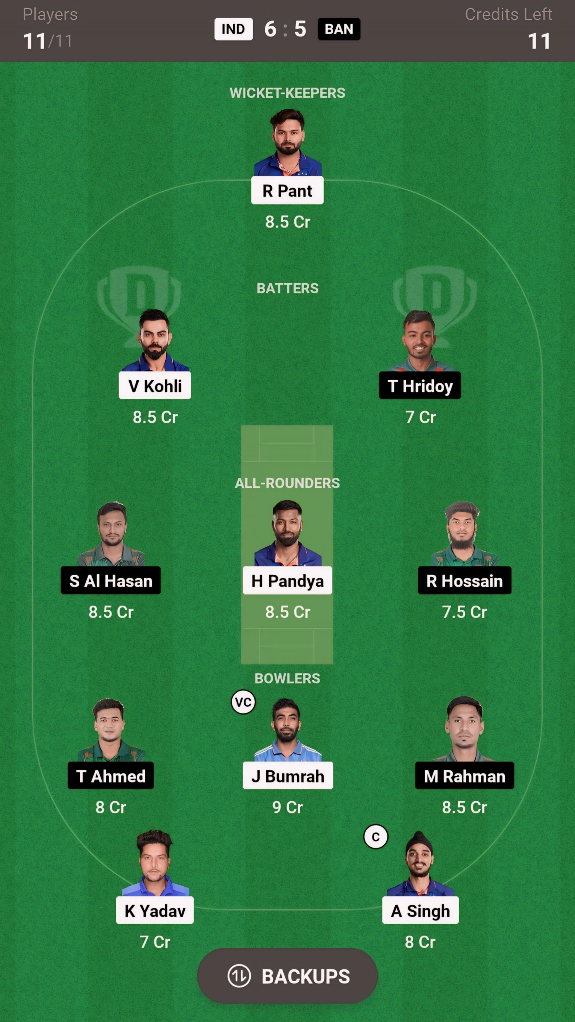 IND vs BAN match captain and vice-captain choices