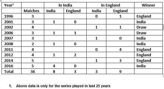 A look at the last 25 years head-to-head record suggests that there is not much that differentiates between the two sides. Both have won an equal number of series with England having won just 1 match more compared to the Indians. Even their away record is pretty similar with both having equal number of wins (series and matches). Away wins for India have been extremely rare in England, and history suggests that the English will have an upper hand in the beginning of the series.