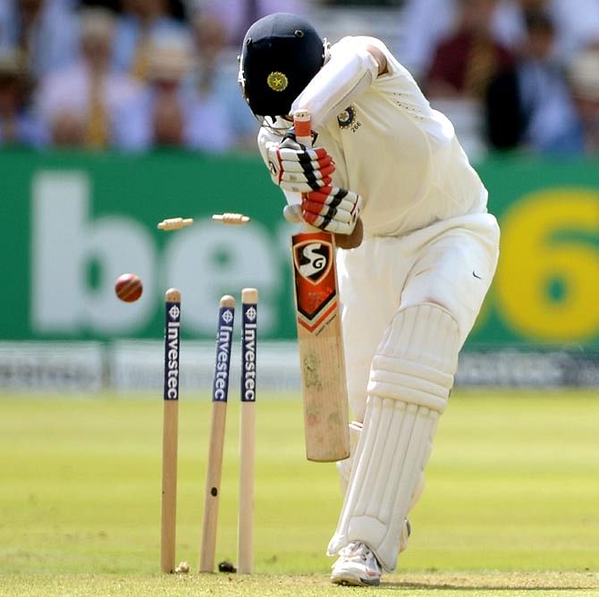 Pujara averages a mammoth 64.28 with 900 runs in 9 matches against Australia in India. But his average reduces almost by half in Australia where he has played 3 Tests scoring 201 runs at 33.50 with a solitary fifty. His main problem has been handling the in-swinger which has put him in trouble on a number of occasions.