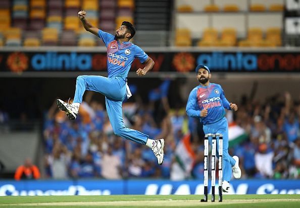 Khaleel Ahmed was given the nod ahead of Shardul Thakur for the first T20I and his match figures read 4-0-37-1. His economy of 9.25 is a testimony to his wayward lines and lengths in his full quota of four overs.