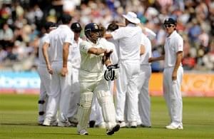 Batting in the fourth innings is never easy. It is in fact rare that a side facing 458 and more than a 100 overs can stave off defeat. However, it also appears that India were aware of this fact. In fact, they seem to have memorized these types of statistics. Therefore, while I saw gallant effort, I somehow didn’t see bloody-mindedness. I didn’t see the Sachin battling through back pain in Chennai or the Sachin batting with Prabhakar while scoring his maiden hundred. I didn’t see VVS fighting tooth and nail at Sydney to restore some pride to a match already lost. I didn’t see Dhoni from 2007 resolutely keeping away everything to instill confidence in the fans that he was not just a swashbuckler, but a man on a mission who had a decent head on his shoulders. Right from the moment Dravid fished foolishly outside off stump, it felt like India didn’t believe they could save the match.