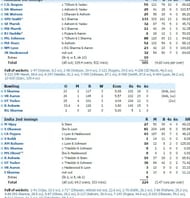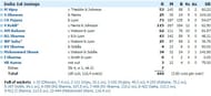 A more heavy and painful defeat. The Indian batting innings admittedly never took off, but the way the tail cooped up into a coccon cannot be passed over: from 105/7 to 161 all out. Ravichandran remained unbeaten on a valiant 46, but it was ultimately for nothing, seeing that the batsmen at the other end continued to get skittled out cheaply.