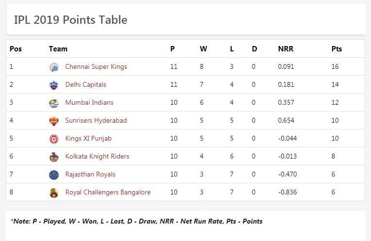 Sunrisers, on the other hand, stay at No. 4 with 10 points from 10 matches and an excellent NRR of +0.654.