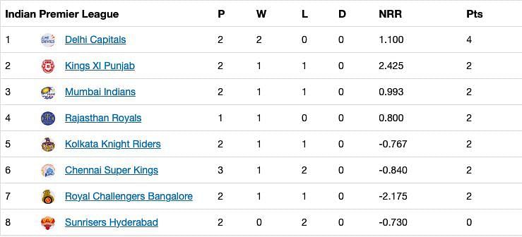 Meanwhile, the Chennai Super Kings have been displaced from their fifth position and are down a spot while the Royal Challengers Bangalore now stand seventh. However, the top half of the table has not been affected by the result of this match.