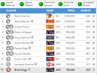 Brad Hogg is an obvious choice and would be my captain as well. I would get in Andre Russell too, who may not do much in this match, but can wreak havoc against Kings XI Punjab. Robin Uthappa usually gives it away after getting off to a good start on such decks, but I need a batsman-wicketkeeper to sort out my combination issues. Like Russell, Uthappa, too, has great chances of coming good against Kings XI Punjab.