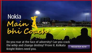 Score whopping 24 runs and get Nokia Music Vouchers to download 10 songs from Nokia Music Store absolutely free, when you register for “Main Bhi Coach”. You can either register right away by clicking on www.kkrcoach.com