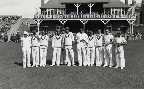 India’s first Test team – L-R: Lall Singh, S Nazir Ali, Jehangir Khan, S Wazir Ali, SR Godambe, CK Nayudu (Captain), Amar Singh, J Naoomal, SHM Colah, PE Palia, JG Navle.