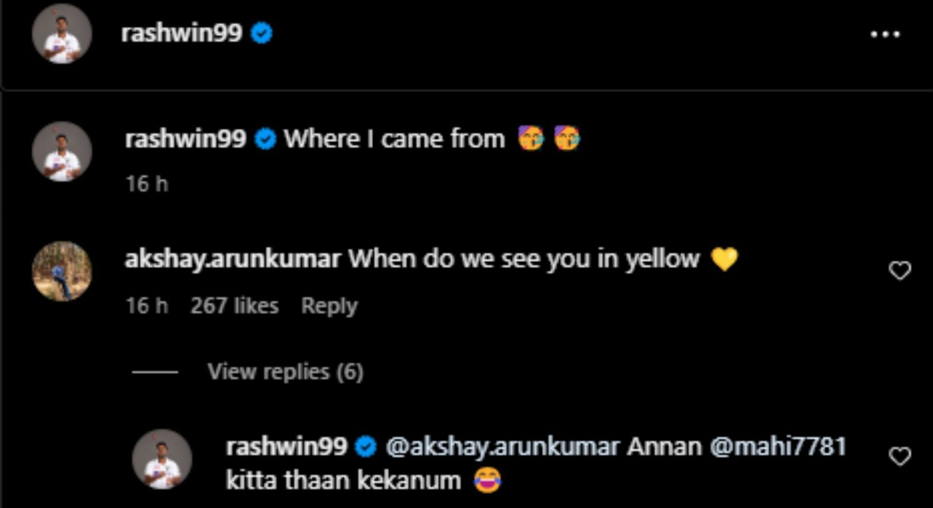 Ravichandran Ashwin on Wednesday (January 10) reacted cheekily to a fan asking him when he will play for Chennai Super Kings once again.