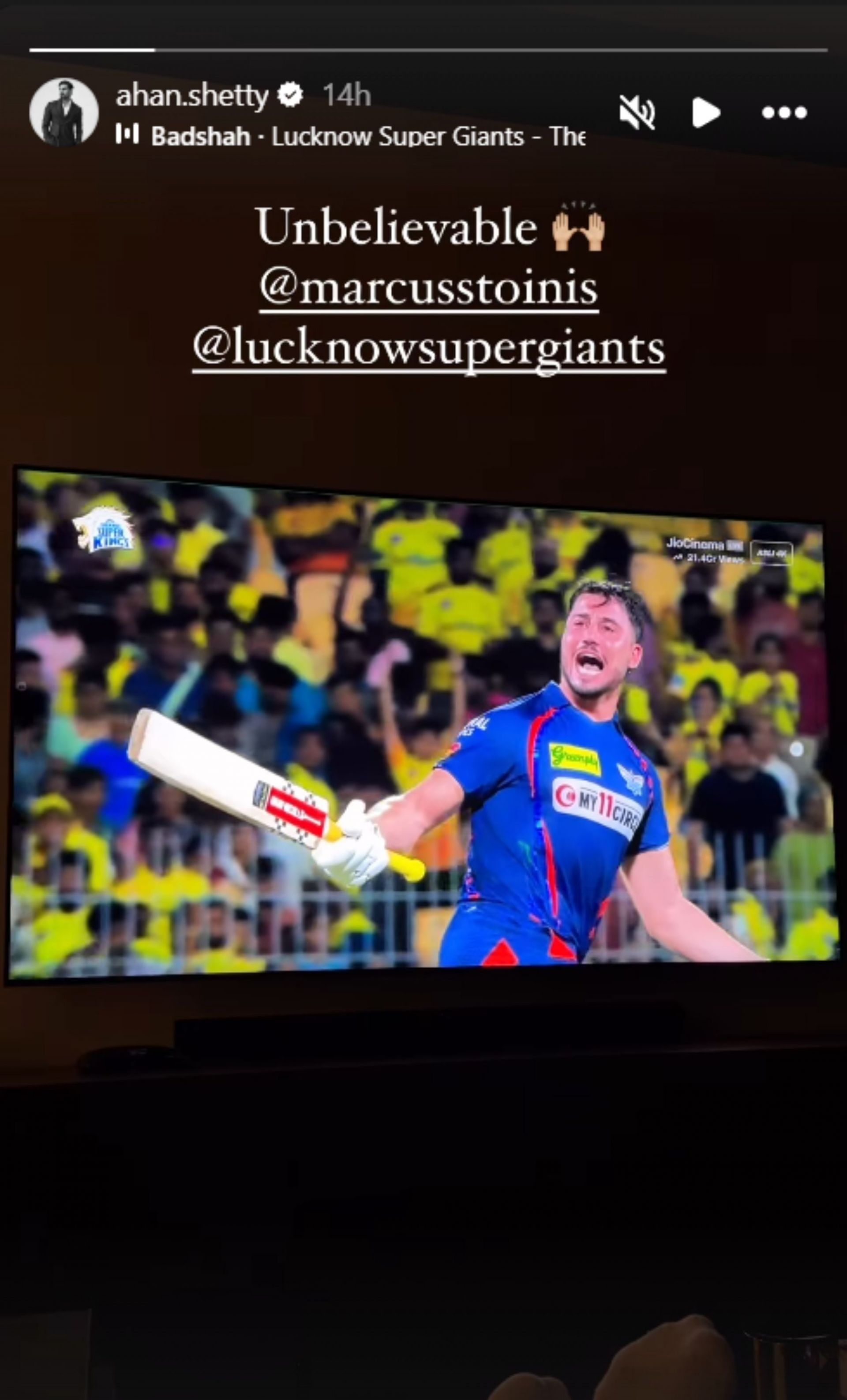 Her brother Ahan also shared a video of Marcus Stoinis running around in delight after hitting the winning runs and used unbelievable in the caption to describe his emotions.