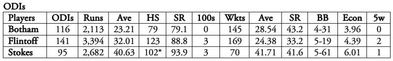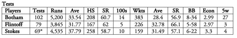 Ian Botham vs Andrew Flintoff vs Ben Stokes: Stats