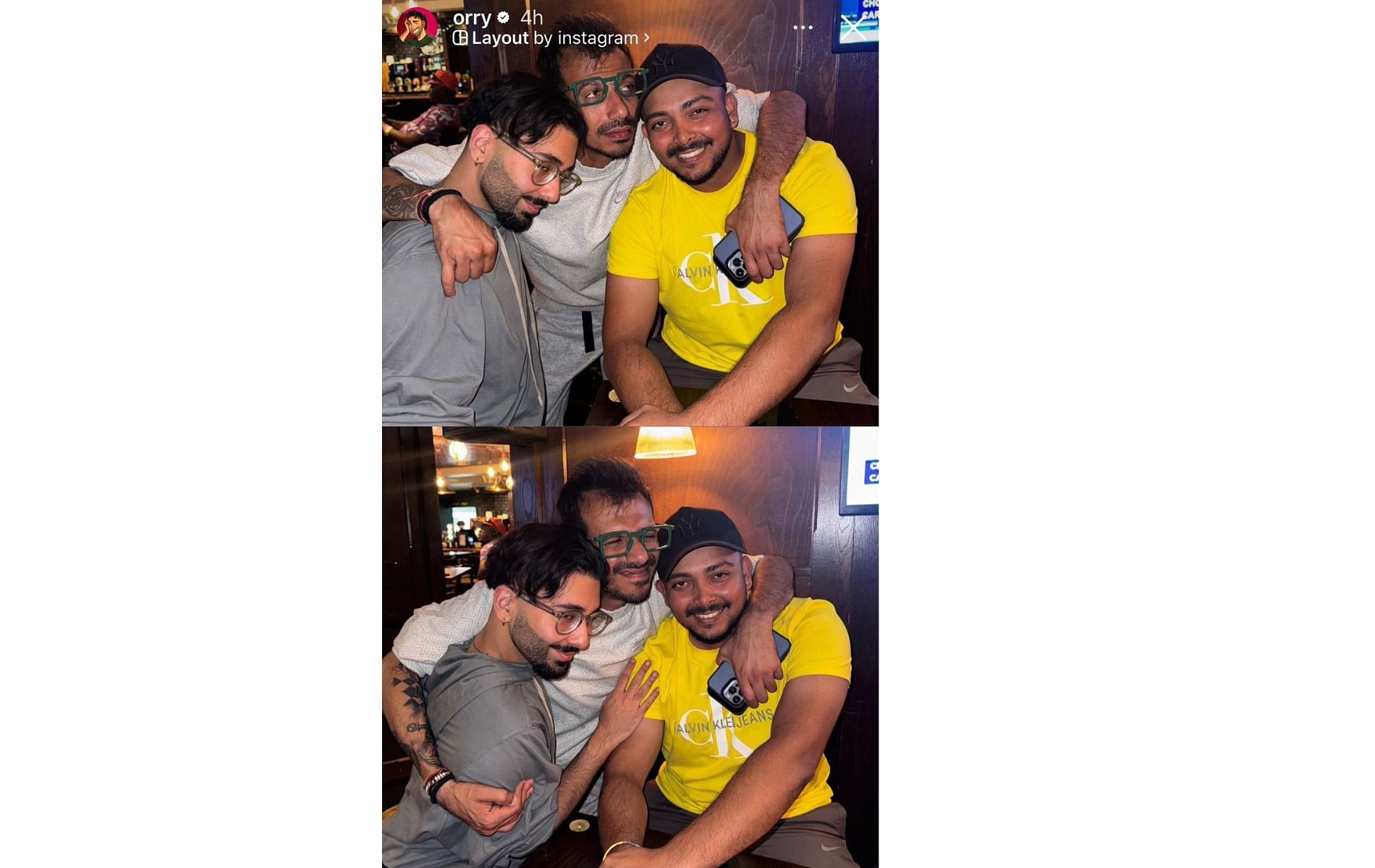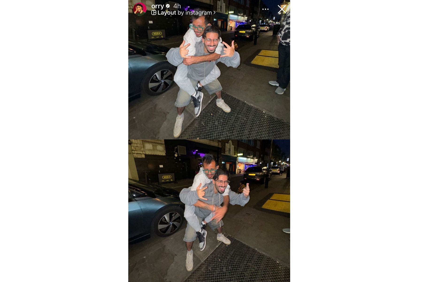Orry shared a few pictures on his Instagram story, giving fans a glimpse of the fun night. In one of the photographs, the Bollywood socialite can be seen carrying Chahal on his back.