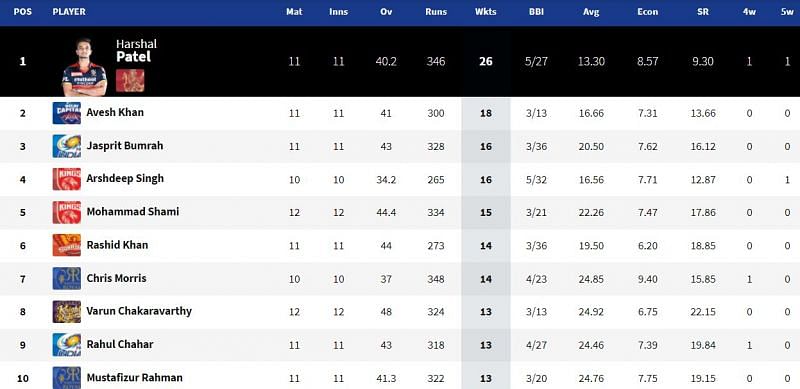 His pace-bowling partner Mohammad Shami picked up the wicket of Eoin Morgan and took his overall tally to 15. Meanwhile, KKR's Varun Chakravarthy has attained eighth place after returning with figures of 2/24 against PBKS.