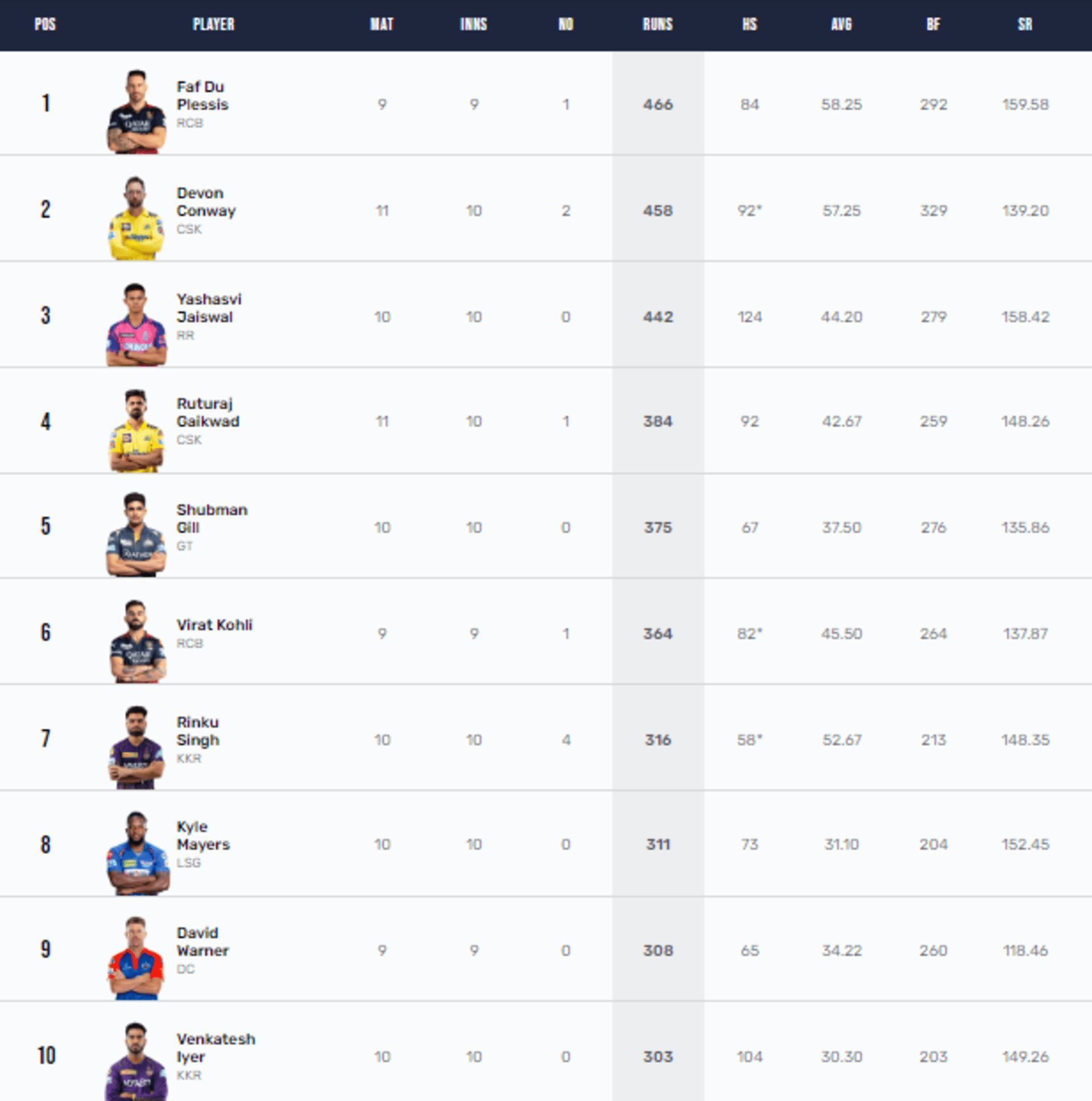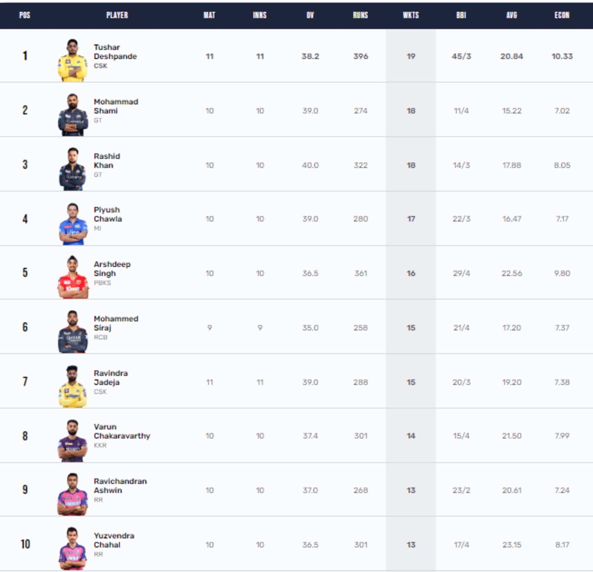 Tushar Deshpande reclaimed the Orange Cap after a brilliant spell. The right-arm pacer picked up the wickets of Cameron Green and Tim David to finish with figures of 2-26. He overtook Mohammed Shami and Rashid Khan and now has 19 wickets in 11 matches.