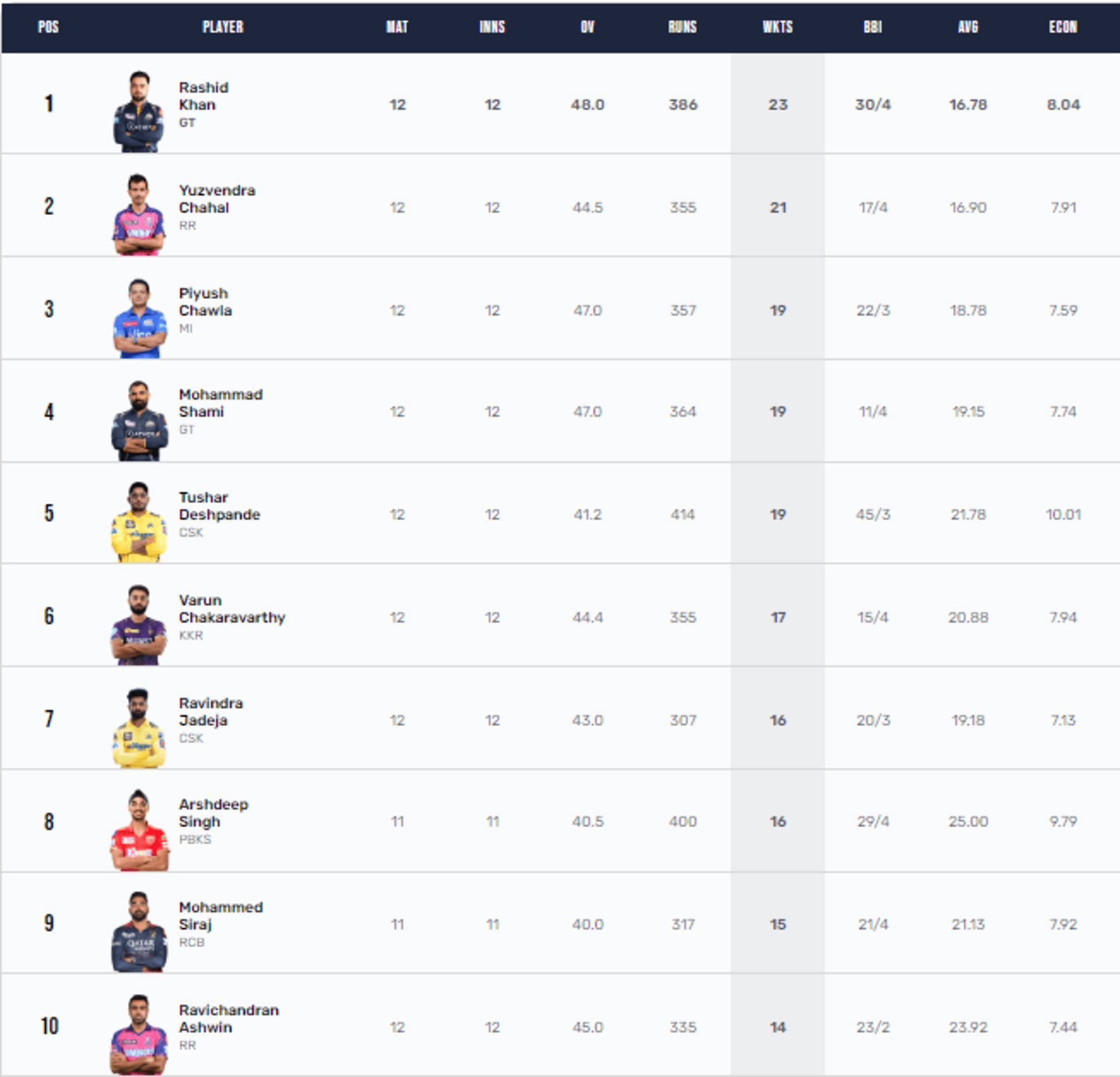 Rashid Khan is the leading wicket-taker of the tournament, with 23 so far. The leg spinner got a hold of the Purple Cap after his excellent display at the Wankhede Stadium against the Mumbai Indians (MI).