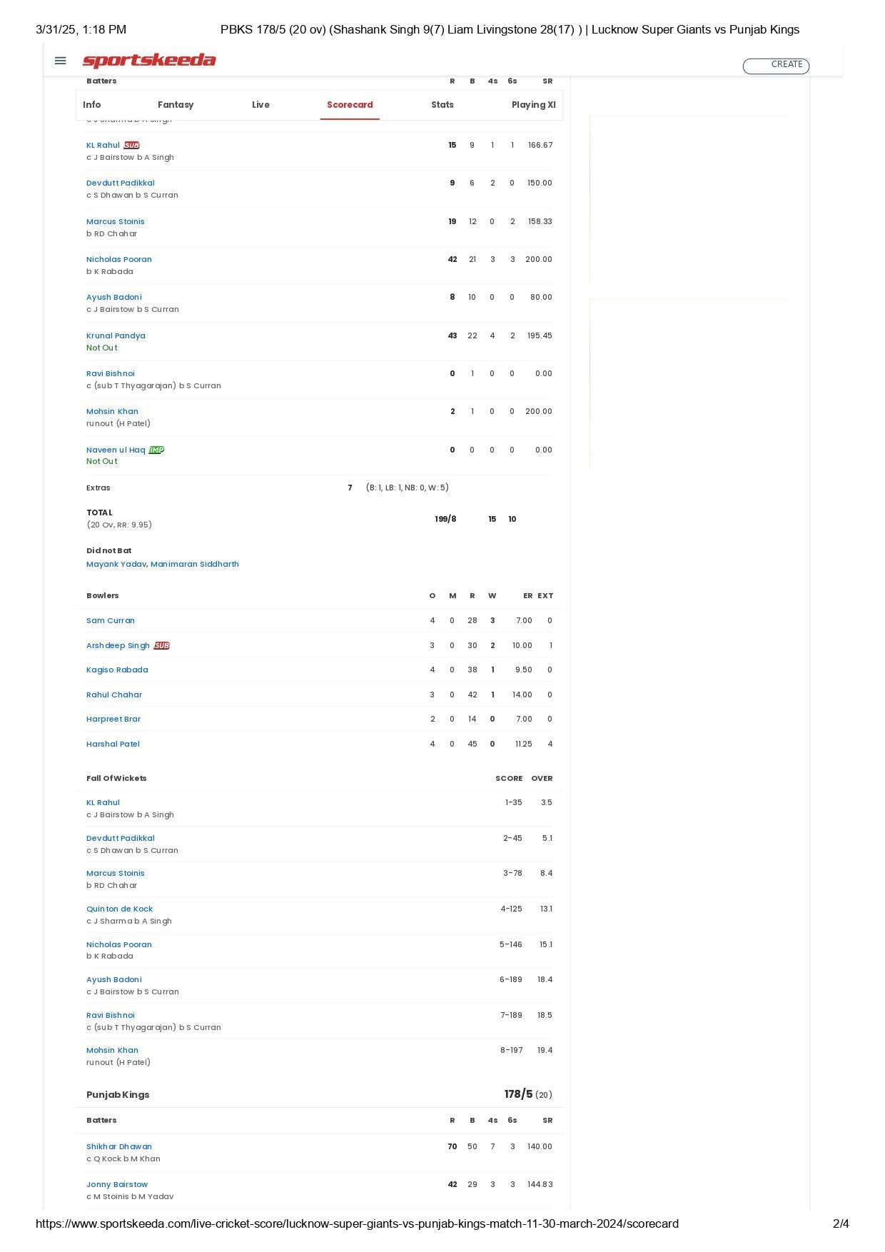 Mayank Yadav was the pick of the bowlers, returning with three wickets, while Mohsin Khan bagged two wickets.