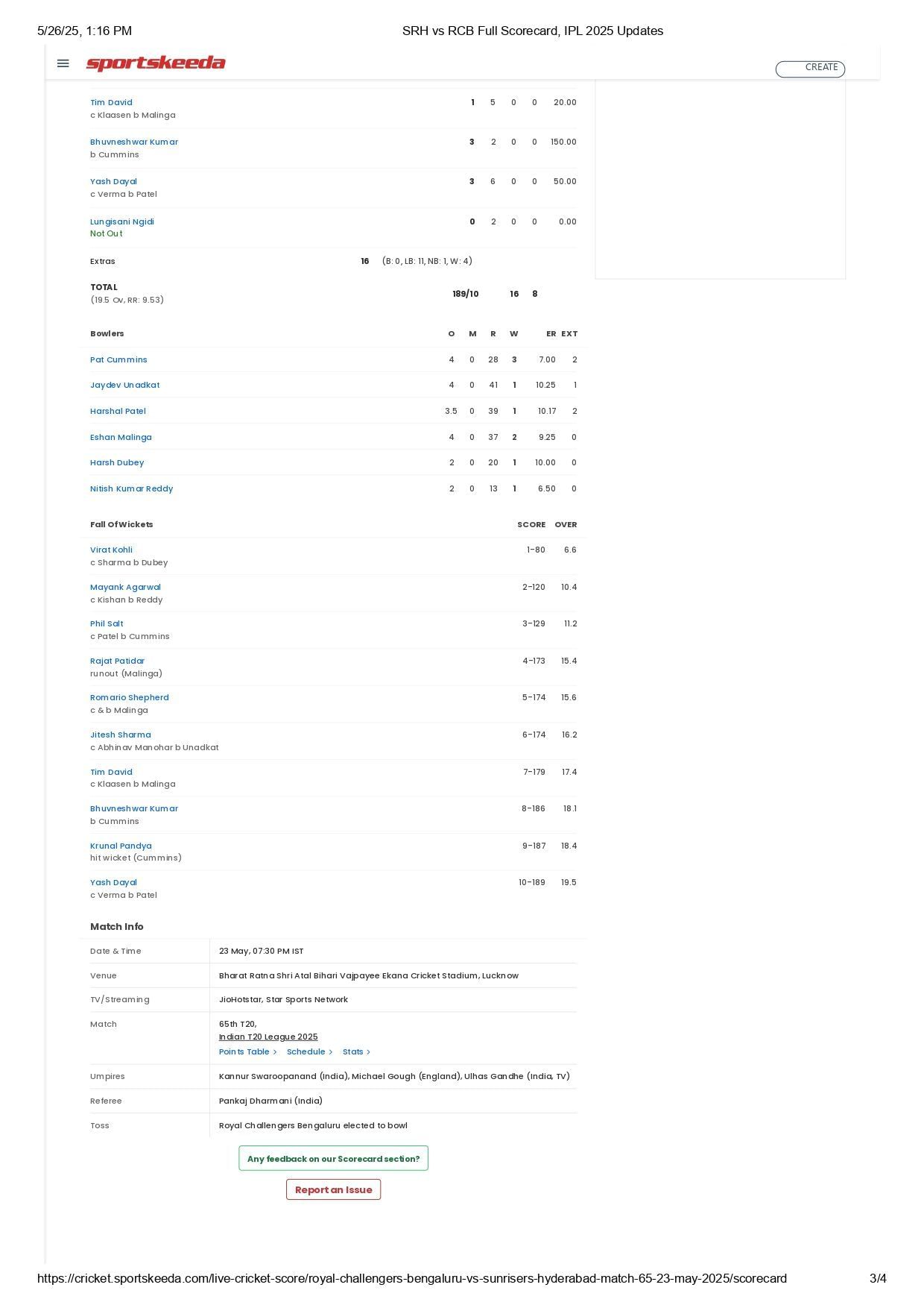 ![RCB vs LSG IPL 2024 scorecard. [Credits: ESPNcricinfo]](https://staticg.sportskeeda.com/editor/2025/05/0250e-17482457838780-1920.jpg?w=190 190w, https://staticg.sportskeeda.com/editor/2025/05/0250e-17482457838780-1920.jpg?w=720 720w, https://staticg.sportskeeda.com/editor/2025/05/0250e-17482457838780-1920.jpg?w=640 640w, https://staticg.sportskeeda.com/editor/2025/05/0250e-17482457838780-1920.jpg?w=1045 1045w, https://staticg.sportskeeda.com/editor/2025/05/0250e-17482457838780-1920.jpg?w=1200 1200w, https://staticg.sportskeeda.com/editor/2025/05/0250e-17482457838780-1920.jpg?w=1460 1460w, https://staticg.sportskeeda.com/editor/2025/05/0250e-17482457838780-1920.jpg?w=1600 1600w, https://staticg.sportskeeda.com/editor/2025/05/0250e-17482457838780-1920.jpg 1920w)