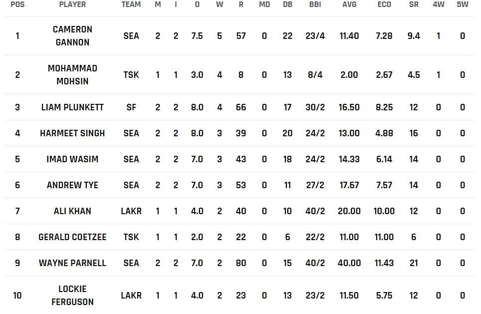2023 MLC Most Wickets List - Cameron Gannon topples Mohammad Mohsin from the top