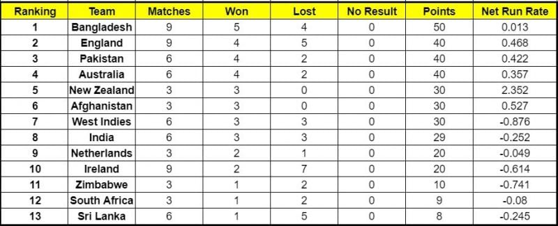 Courtesy of the win, the Netherlands have overtaken Ireland in the ICC Cricket World Cup Super League points table. The Dutch team has the same number of points as the Irish, but its net run rate is superior. As a result, the Netherlands have risen to ninth position, while Ireland slipped to number ten.