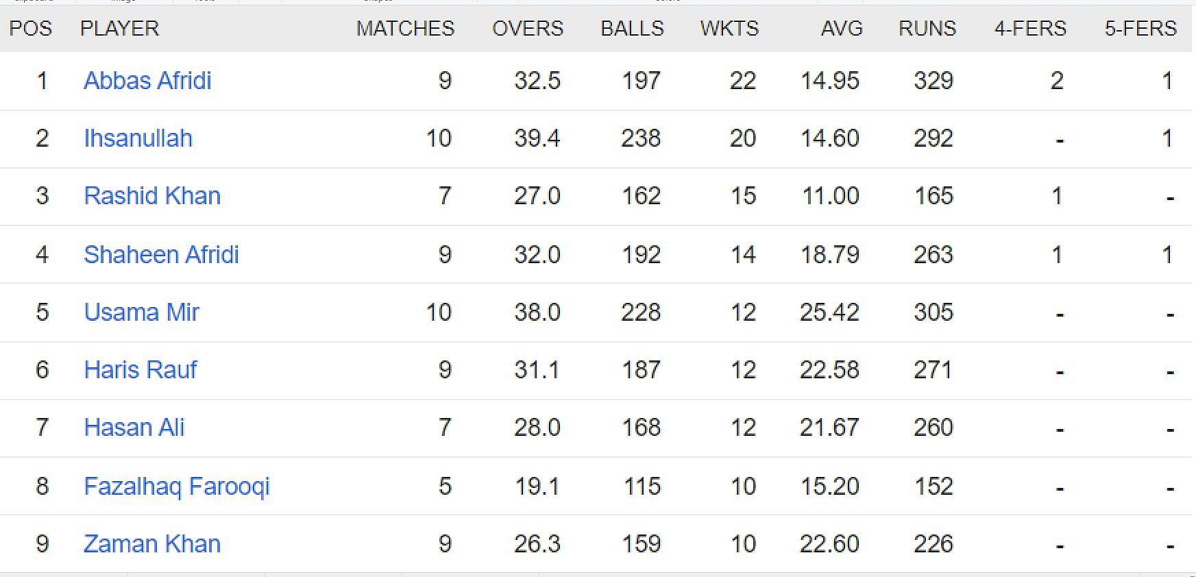 Abbas Afridi, who became the fifth bowler to take a PSL hat-trick, ended the league stage with 22 wickets in nine games, albeit at an expensive economy rate of 10.02. He also picked up a five-wicket haul in the Sultans’ final league game against the Peshawar Zalmi.
