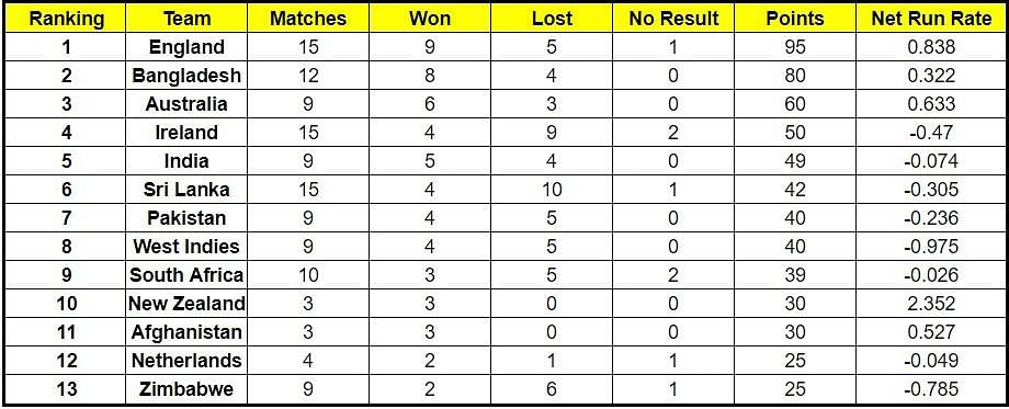 Meanwhile, the Netherlands overtook Zimbabwe. Both Zimbabwe and Netherlands have the same points but the latter team has a better net run rate. The second ODI of this ICC Cricket World Cup Super League series is scheduled to take place on Sunday.