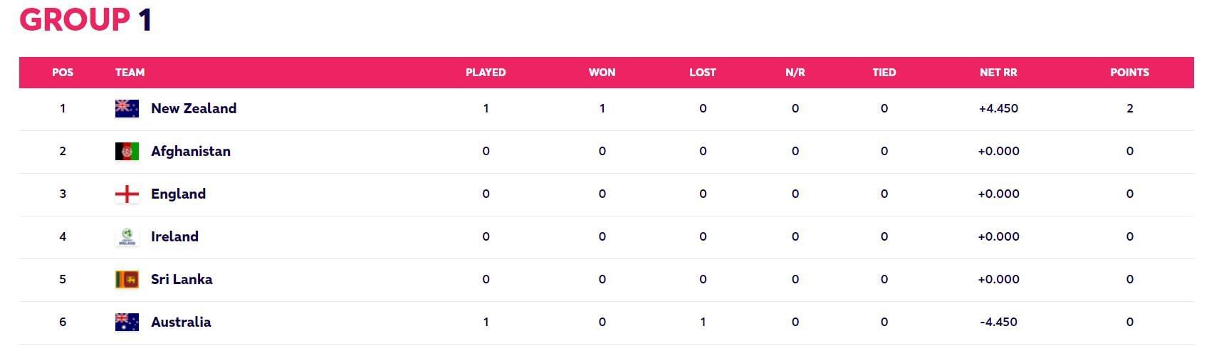 With this big win, New Zealand have grabbed two points and boosted their net run rate. They now have a net run rate of +4.450 to go to the top of the table in Group 1.