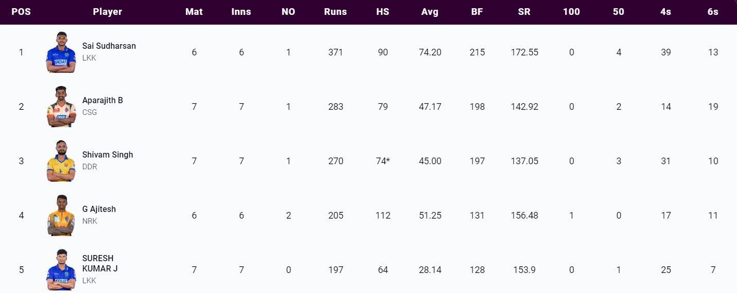 TNPL 2023 Most Runs List