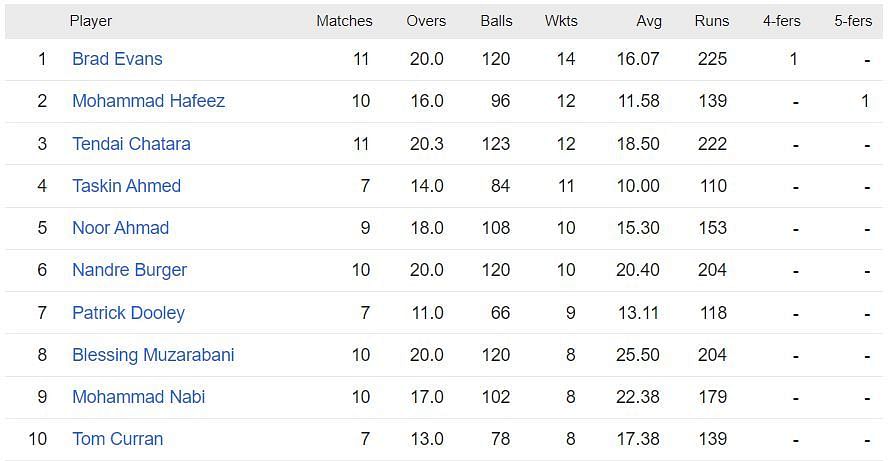 Tendai Chatara, who remained wicketless in the final, has ended the league’s journey as the third-ranked bowler with 12 wickets from 11 appearances.