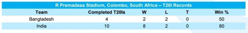 As far as the venue is concerned, India has claimed victory in eight of their ten outings at the R. Premadasa Stadium in Colombo. Bangladesh, on the other hand, has a 50% win record, winning two out of the four matches played at the stadium.